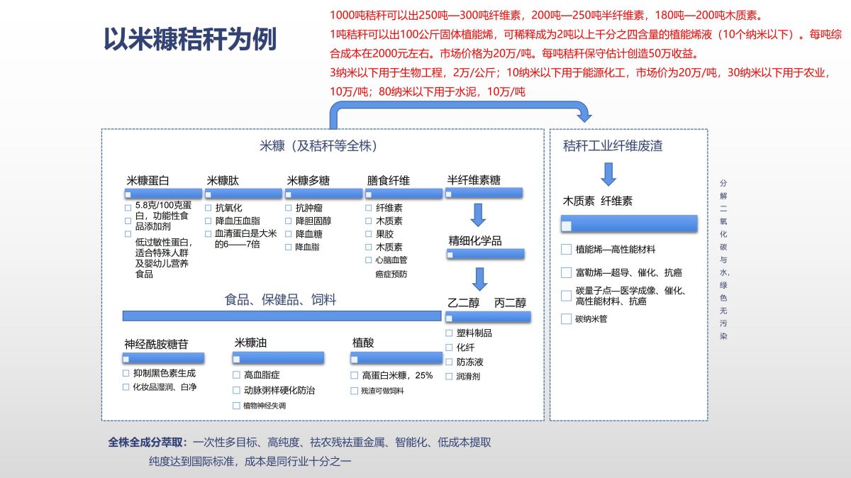 Features: High-purity purification, removal of pesticide residues and heavy metals, layout of 9 sunrise industries based on plant monomer intermediates, such as biopesticides, biofeed, food safety, health products, new materials, and new energy, to meet international and domestic needs. Preparation of biophytoene: Preparation of phytoene from residual waste lignin and cellulose. A large-scale mass production enterprise of nano-carbon materials can be realized.
