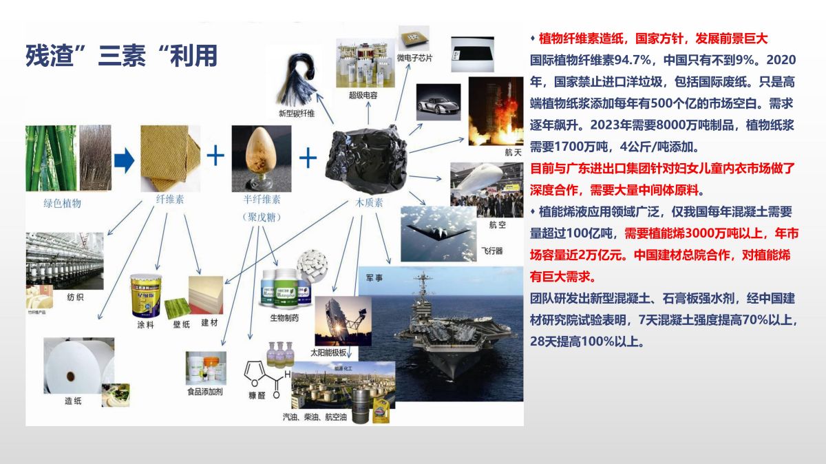 Plant structure analysis and functional product development: Residue three elements use plant cellulose to make paper, national policy, huge development prospects. International plant cellulose accounts for 94.7%, while China accounts for less than 9%. In 2020, the country will ban the import of foreign garbage, including international waste paper. It is just that there is a market gap of 50 billion yuan for the addition of high-end plant pulp every year. Demand is soaring year by year. In 2023, 80 million tons of products will be needed, and 17 million tons of plant pulp will be needed, with 4 kg/ton added. At present, we have carried out in-depth cooperation with Guangdong Import and Export Group for the women and children's underwear market, which requires a large amount of intermediate raw materials.