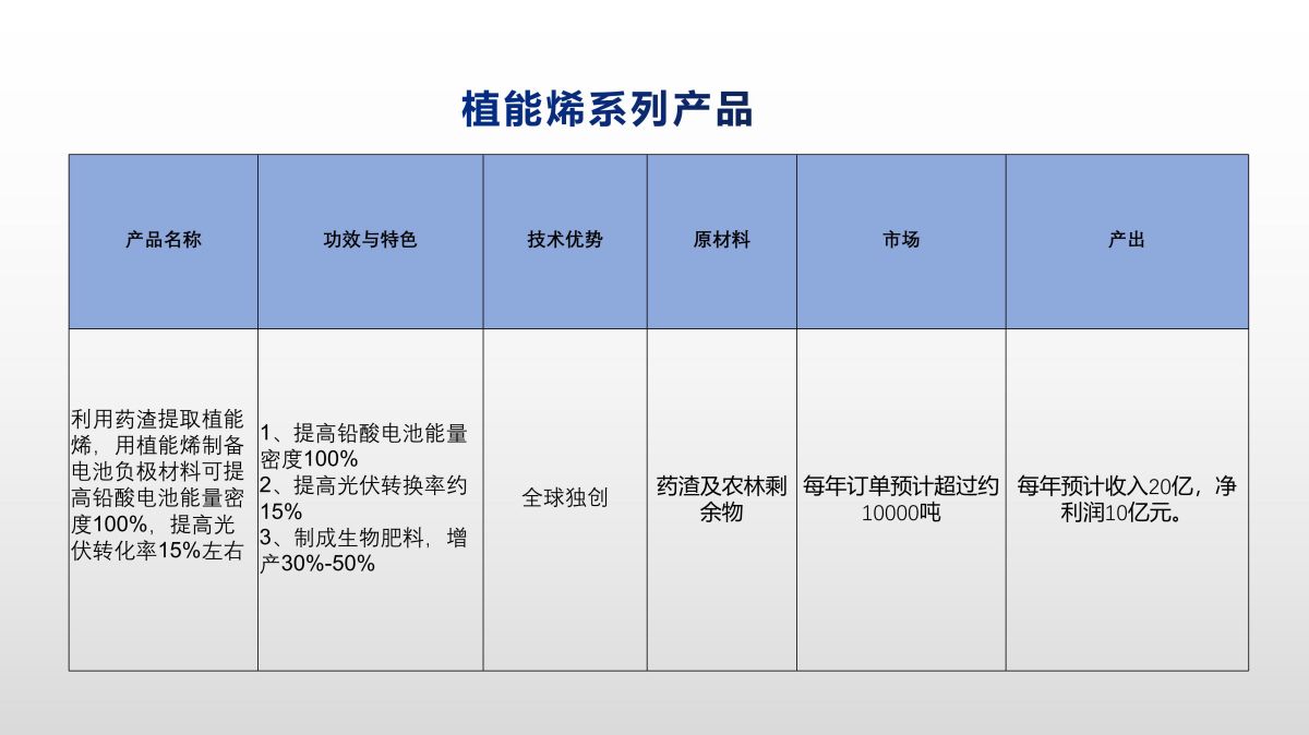 The construction of high-value utilization of regional biological products mainly takes the regional characteristic natural products as the object, extracts and separates them with high purity, and uses lignin and cellulose such as residues and waste as raw materials to prepare bio-phytoene, so as to achieve full utilization and bring extremely high added value. Build a high-tech agricultural enterprise with a scale of tens of billions in the region.